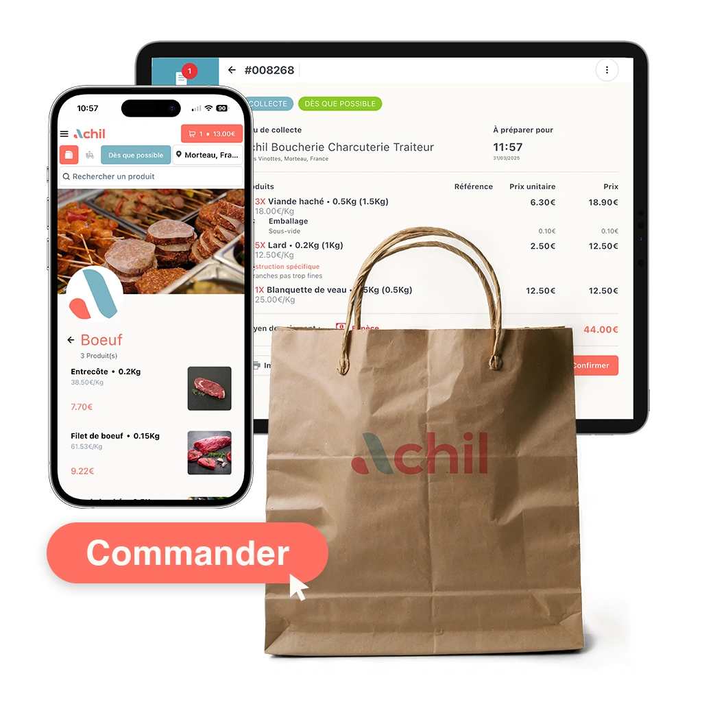 Recevez vos commandes en temps réel grâce à notre application disponible sur iOS et Android. Installez-la sur votre tablette et suivez facilement chaque commande depuis votre boucherie charcuterie traiteur.