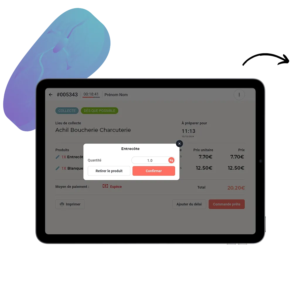 Besoin d’ajustez une commande en ligne ? Retirez un produit ou une option qui n’est plus disponible – Ajustez le poids exact pour un produit vendu au poids – Modifiez l’heure à laquelle la commande sera prête en ajoutant du délai.