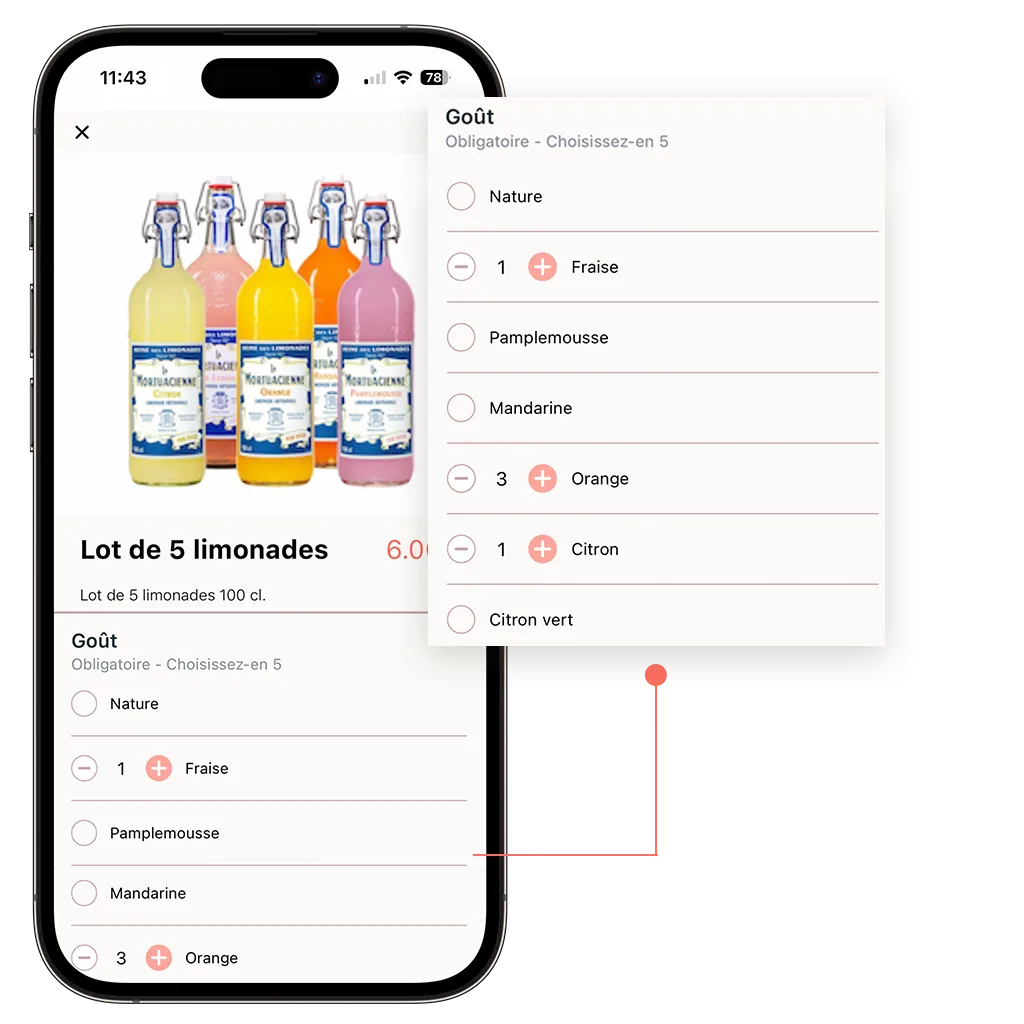 Proposez des groupes d'options à vos produits et laissez vos clients choisir les extras qui leur font vraiment plaisir.
