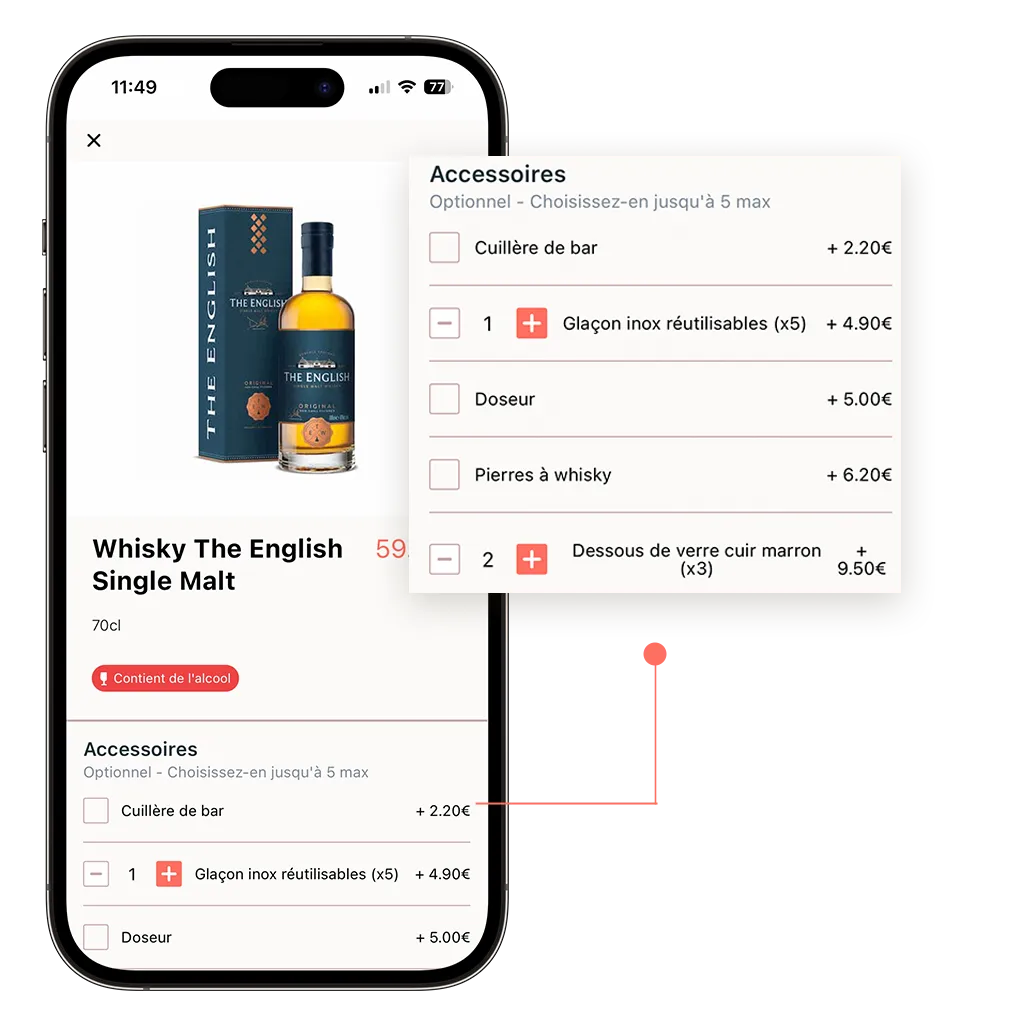 Proposez des groupes d’options à vos produits et laissez vos clients choisir les extras qui leur font vraiment plaisir.
