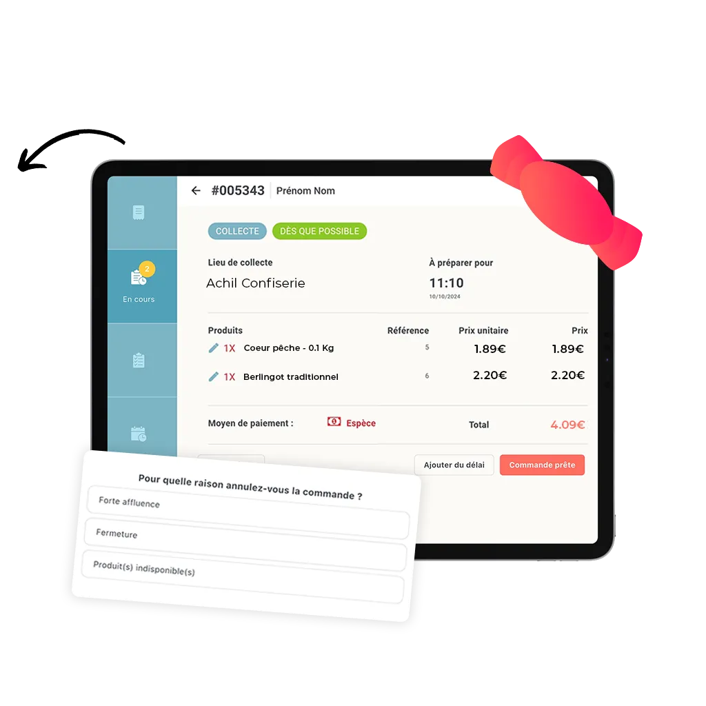 Besoin d’ajustez une commande en ligne ? Retirez un produit ou une option qui n’est plus disponible – Ajustez le poids exact pour un produit vendu au poids – Modifiez l’heure à laquelle la commande sera prête en ajoutant du délai.