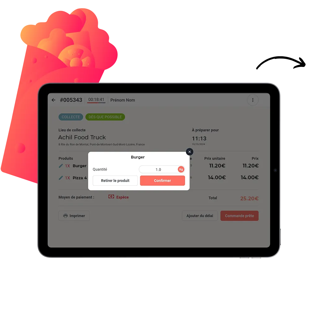 Besoin d’ajustez une commande en ligne ? Retirez un produit ou une option qui n’est plus disponible – Ajustez le poids exact pour un produit vendu au poids – Modifiez l’heure à laquelle la commande sera prête en ajoutant du délai.