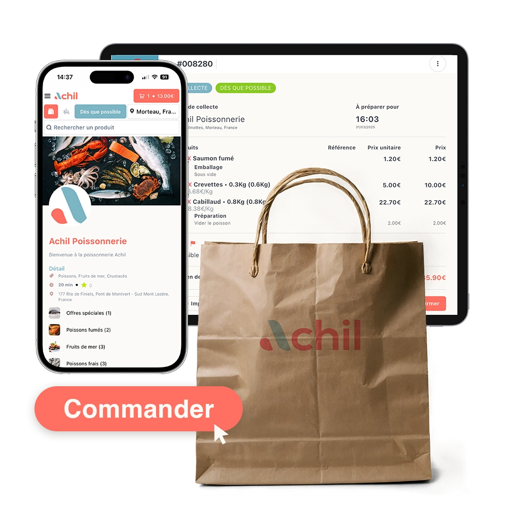 Le click and collect permet à vos clients de commander en ligne vos plats et de venir les récupérer directement dans votre poissonnerie sans attendre.