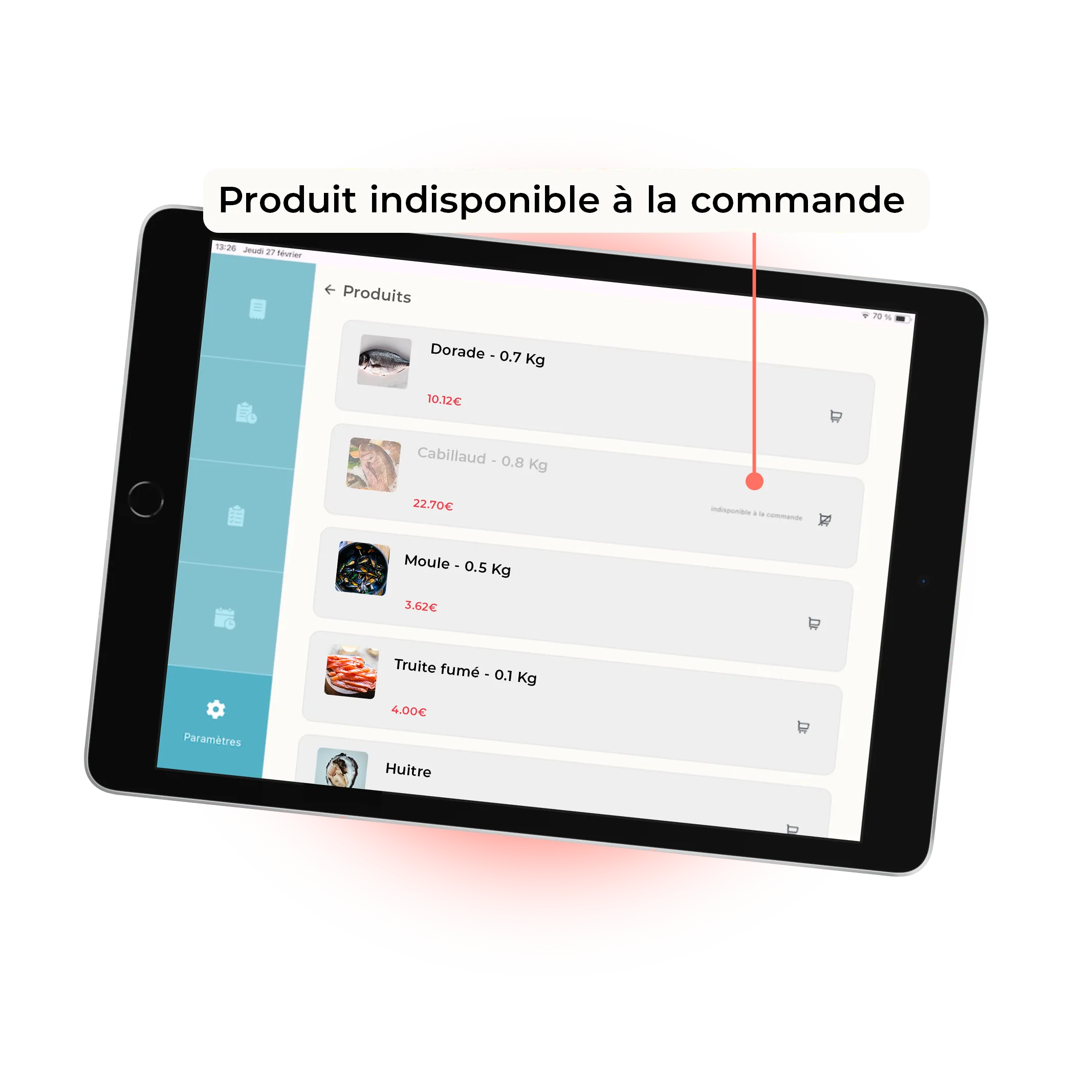 Grâce au Shop Dashboard Achil, vous gérez la disponibilité de vos poissons, crustacés et produits de la mer, suspendez les commandes si besoin et consultez vos ventes quotidiennes simplement.